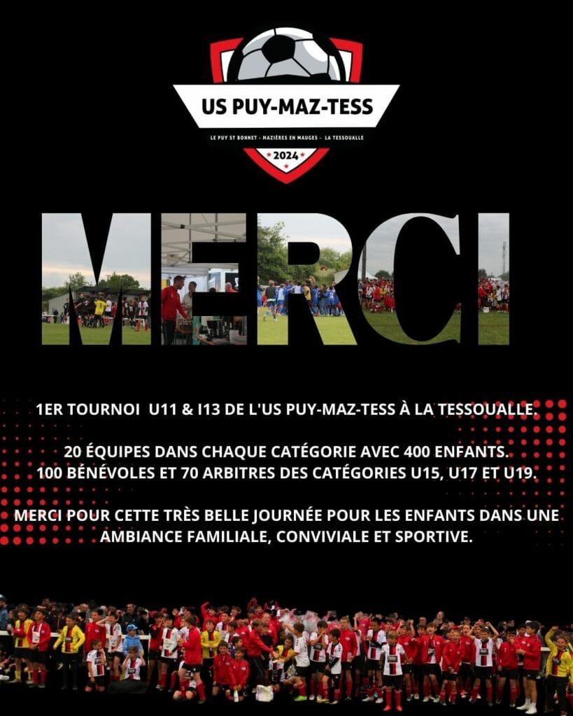 Le jeudi 8 mai 2025, l’US Puy-Maz-Tess organise un tournoi pour les catégories U11 et U13 au Stade de l’Abbé